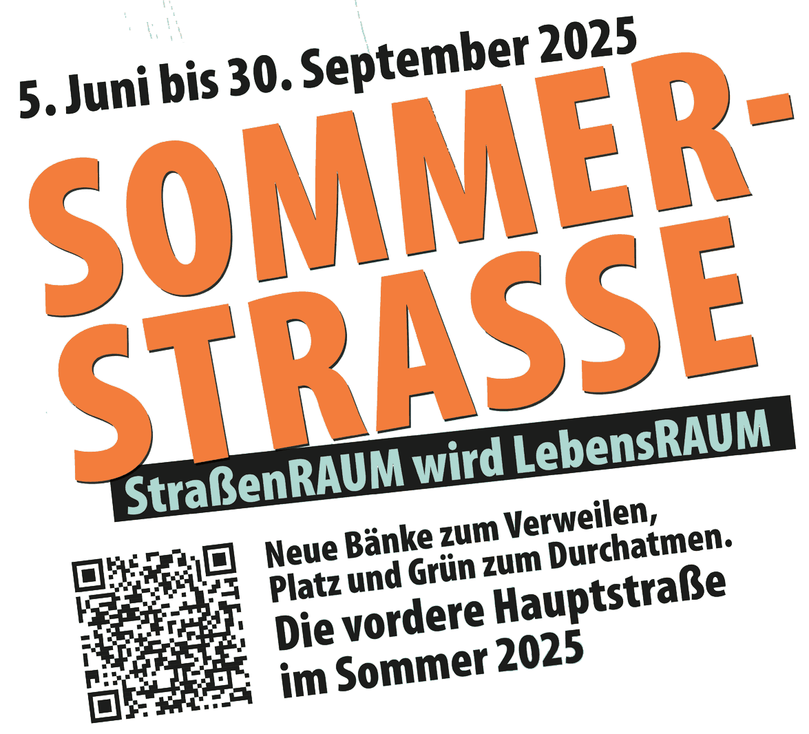 Von Anfang Juni bis Ende September hat die vordere Hauptstraße vorübergehend ein anderes Gesicht bekommen. Mit der Umgestaltung soll mehr Platz für alle geschaffen werden und die Aufenthaltsqualität in der Hauptstraße verbessert werden.